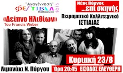 - την Κυριακή 23 Αυγούστου το Πειραματικό Καλλιτεχνικό Εργαστήρι Ιστιαίας με το "Δείπνο Ηλιθίων"