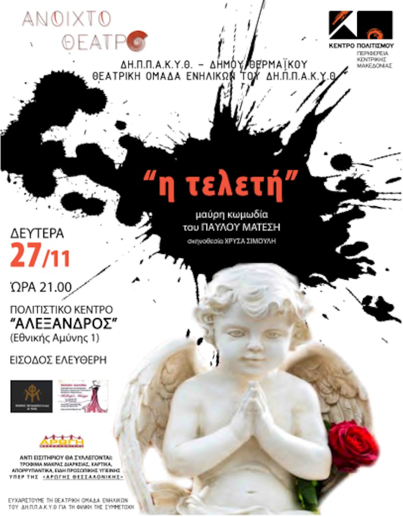 Το Κέντρο Πολιτισμού της Περιφέρειας Κεντρικής Μακεδονίας, διοργανώνει την θεατρική παράσταση